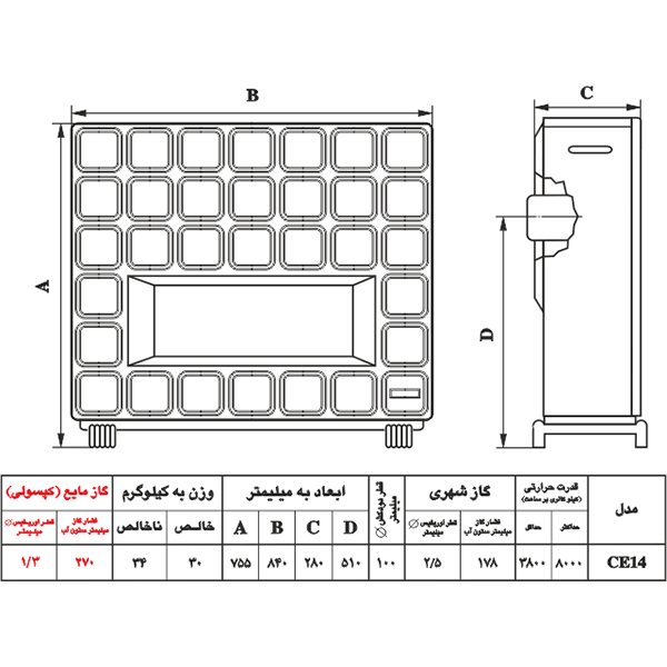 بخاری گازی مدل سرامیکی CE14 از دیگر محصولات شرکت نیک کالا بوده که این محصول در رده بخاریهای گازی دودکشدار قرار دارد. همچنین برچسب مصرف انرژی این بخاری گازسوز نیک کالا D است. شرکت صنعتی نیک کالا بیش از 50 سال است که در تولید، توزیع و صادرات انواع بخاری، اجاق گاز و ... سابقه دارد. این شرکت یکی از تولیدکنندگان بزرگ و مجهز انواع بخاری در خاورمیانه است. بخاری که یکی از ضروریترین لوازم منزل در فصول سرد میباشد باید در انتخاب آن دقت زیادی کنید که نسبت به محیط که دارید یک انتخاب صحیح داشته باشید. در بازار چند نوع بخاری وجود دارد که شامل بخاری گازی و برقی (دودکش دار، بدون دودکش، دیواری و زمینی) میباشد.برای استفاده برای منازل بهتر است از بخاری دودکشدار استفاده کنید چون ایمنی بیشتری نسبت به بخاریهای بدون دودکش دار دارند. بخاریهای بدون دودکش بیشتر مناسب محیطهای باز و محل کار و ... میباشد. همچنین مزیت برتر این بخاریها نسبت به بخارهای دودکشدار این است که گرمای حاصل از احتراق صددر صد به محیط نفوذ کرده و این در صورتی که بخاریهای دودکش دار 30 درصد گرمایش خود را از طریق لوله از دست خواهند داد. بخاری گازی نیک کالا دارای استاندارد ملی ایران و استانداردهای بین المللی CE اروپا و استاندارد TSE است که عملکرد و کارایی این بخاری را تضمین شده است.