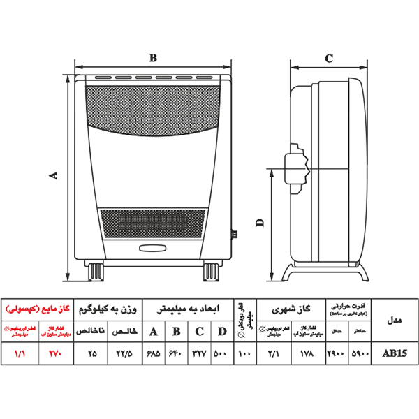 بخاری ناهید AB-15 به دلیل داشتن طراحی منحصر به فرد ، استاندارد و ارتقاء بازدهی حرارتی، حدود 20 درصد مصرف گاز را کاهش می دهد .